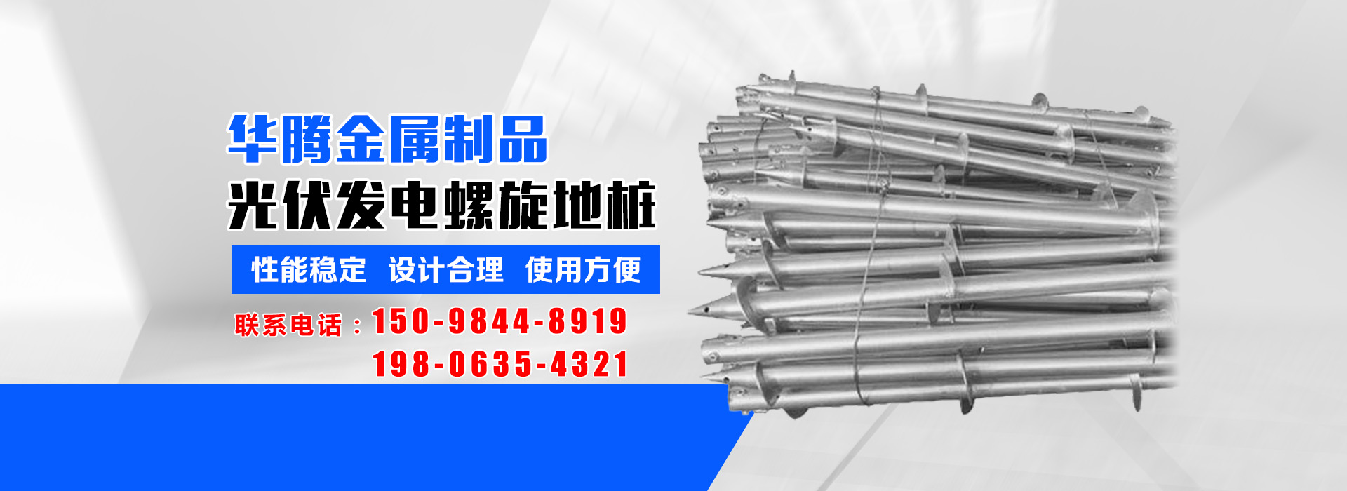 華騰金屬制品 (山東) 有限公司是螺旋地樁定制銷售公司,主營光伏螺旋地樁、光伏地樁等產(chǎn)品所生產(chǎn)的光伏螺旋地樁品種規(guī)格齊全,并可根據(jù)客戶的需求、圖紙、樣品研發(fā)產(chǎn)品。多年來我們以優(yōu)良的服務(wù)及高精端產(chǎn)品贏得了國內(nèi)外廣大客商的贊譽(yù)及肯定,光伏螺旋地樁等產(chǎn)品廣泛應(yīng)用于光伏太陽能電站樁基、房屋建筑樁基、...…